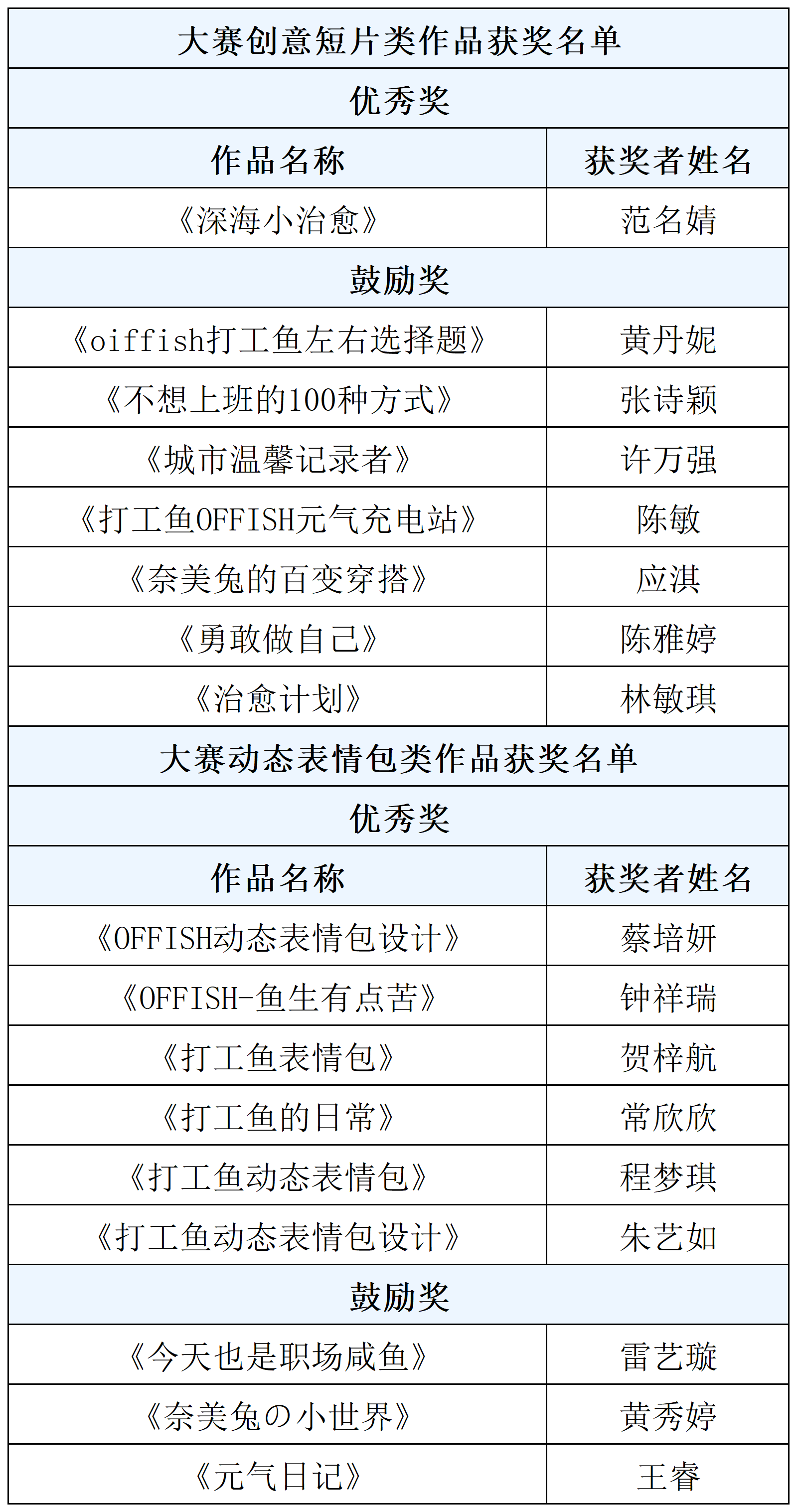 大赛其他获奖名单