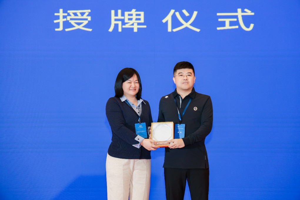 图6:厦门大学嘉庚学院副院长王冬梅(左)为厦门校友会会长李凯(右)颁发任命牌匾